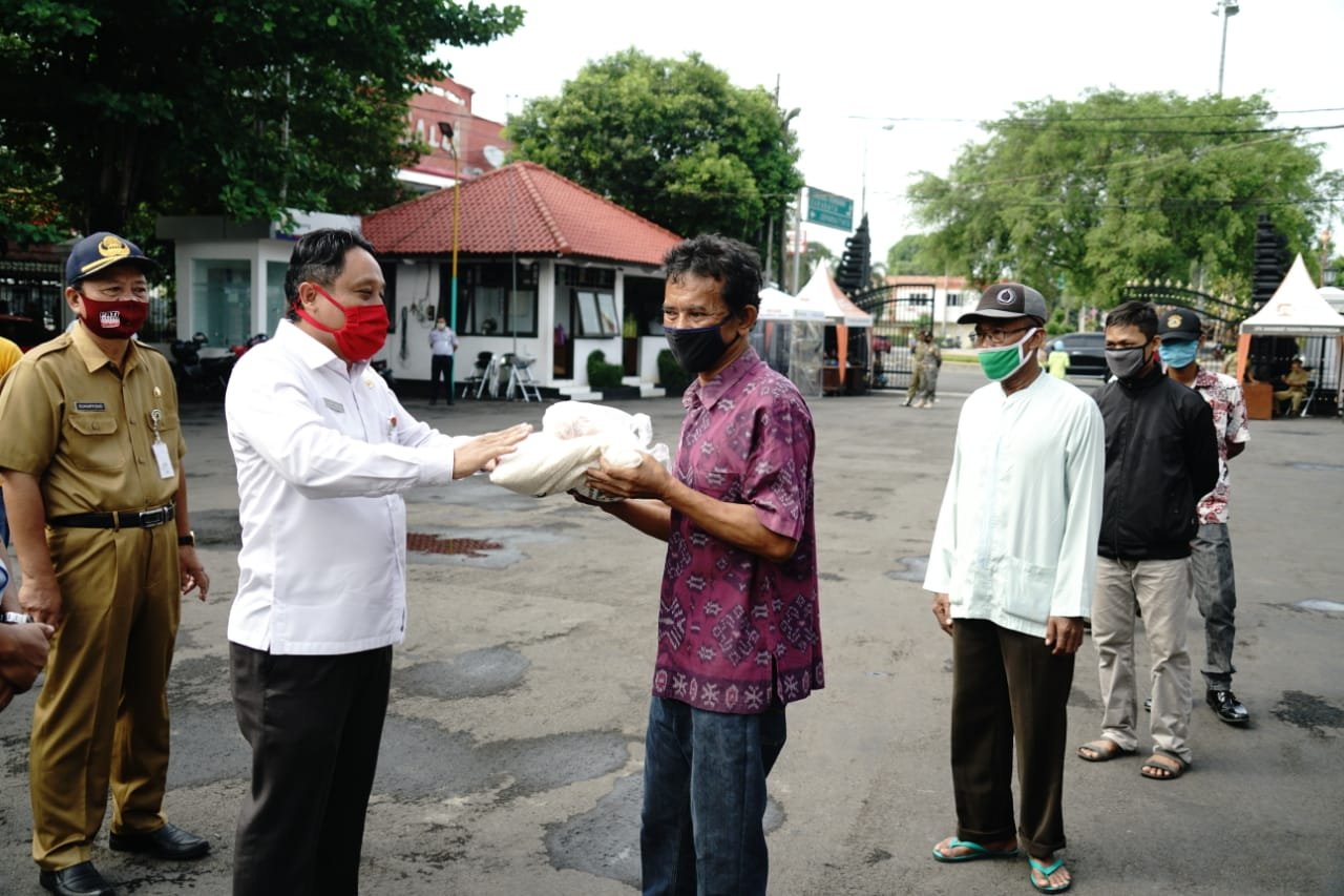 Adapun perwakilan penerima bantuan adalah dari ojek pangkalan, tukang becak, sopir angkot, juru parkir, ojek online, taksi online, PKL, penyapu jalan, tenaga kebersihan, warga binaan serta pegiat seni.