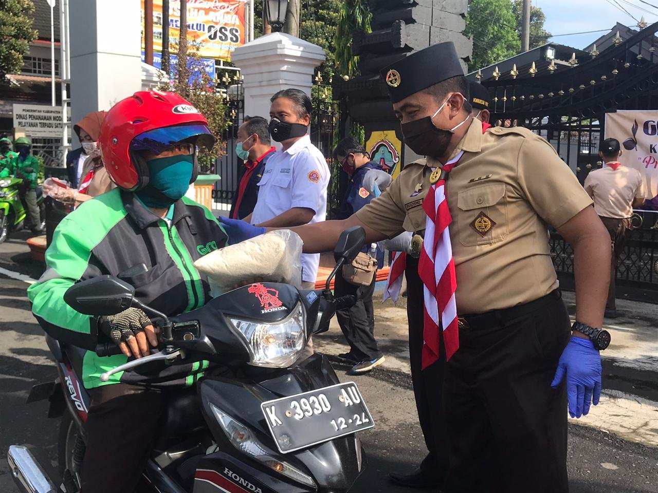 Dengan koordinasi dengan pengurus ojol, mengingat dan menimbang, penyerahan ojek online berlokasi di depan kantor DPMPTSP dan komplek alun-alun Pati dimulai pukul 08.00 hingga selesai. Demikian untuk warga yang berada sekitar sanggar Kwarcab Pati dilakukan saat itu juga dengan penuh kebersamaan.