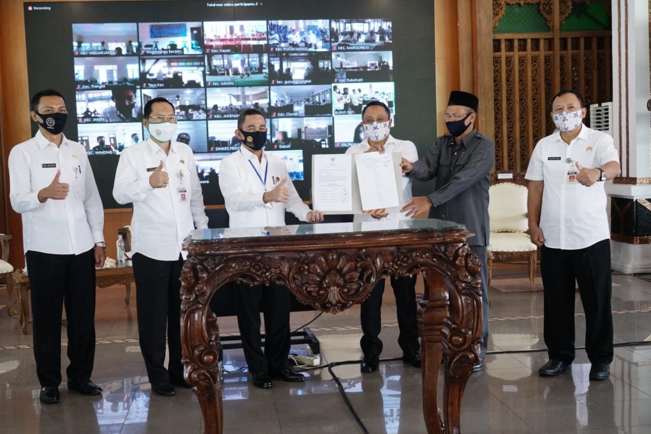 Diikuti oleh kepala OPD, camat serta 12 desa yang menjadi lokus dalam penanganan stunting di Kabupaten Pati. Mengingat masih dalam kondisi pandemi, acara tersebut dihadiri terbatas sebanyak 30 peserta sedangkan sisanya mengikuti melalui video conference.