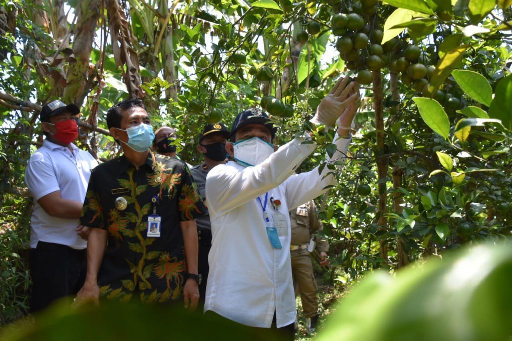 Pati, Berita10 – Bupati Haryanto melakukan peninjauan ke tempat wisata Petik Jeruk Ican Keke milik Bapak Sumito di Desa Tegalarum Kecamatan Margoyoso, Jum’at (18/9). Peninjauan untuk mengecek penerapan protokol kesehatan di tempat wisata yang sedang mengajukan izin buka.
