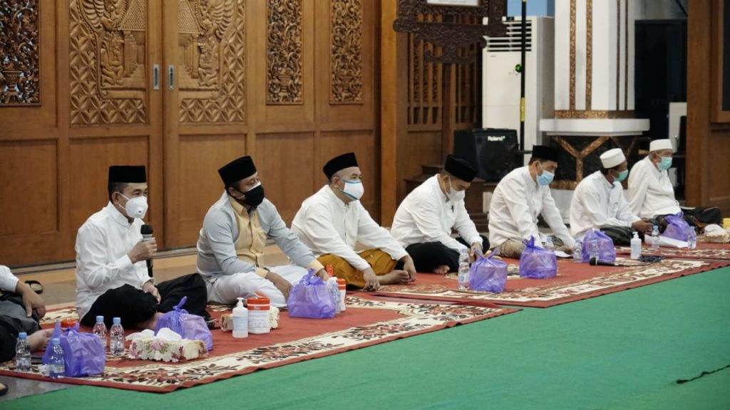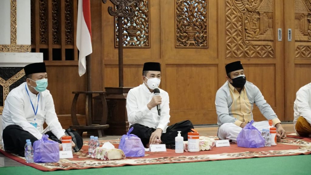 Pati, Berita10 – Bupati Pati Haryanto, kembali mengikuti istighosah rutin bersama ulama’ dan umaro di Pendopo Kabupaten Pati. Agenda ini juga dihadiri oleh Wakil Bupati Pati Saiful Arifin (Safin), Sekretaris Daerah (Sekda) Suharyono, Asisten Ekonomi Pembangunan Sekda, Kepala BPKAD serta beberapa tamu undangan yang jumlahnya terbatas. (Kamis malam, 24/09/2020).