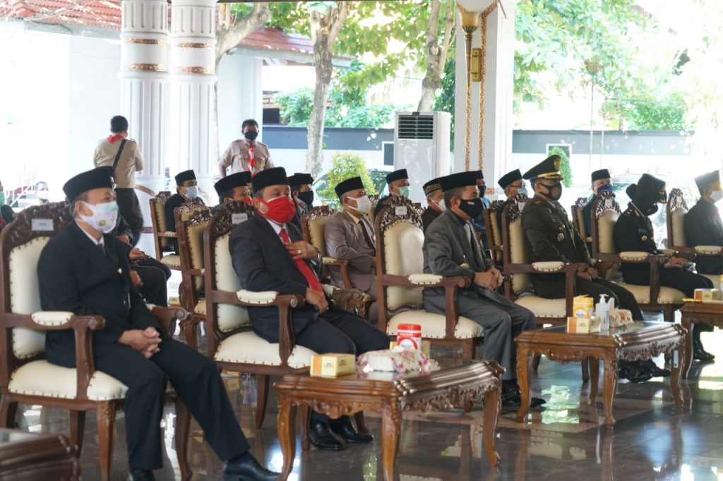 Pati, Berita10 – Upacara Peringatan Hari Kesaktian Pancasila di Kabupaten Pati dilakukan secara virtual di Pendopo Kabupaten Pati. Bupati Haryanto didampingi oleh Wakil Bupati Safin beserta Sekda Suharyono mengikuti Upacara Kesaktian Pancasila dengan penerapan protokol kesehatan secara ketat.(Kamis, 1/10/2020) Kegiatan yang dilakukan dengan menerapkan protokol kesehatan ini, dihadiri pula oleh Forkopimda, para Kepala OPD terkait, dan perwakilan DPRD Kabupaten Pati.