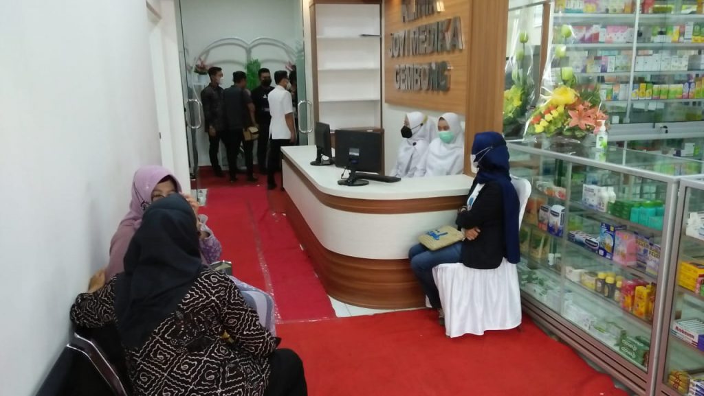 Bupati Pati Haryanto didampingi Komandan Kodim 0718/Pati Letkol Czi Adi IlhamĀ Zamani, SE.M.I.POL, Kasdim Pati Mayor Inf Much Sholihin, S.Ag. Msi, Asisten Ekonomi, Pembangunan dan Kesra Sekda Edi Sulistyono, Kepala DPMPTSP Sugiyono, Perwakilan Dinkes, Kepala DLH, jajaran Forkopimcam Gembong meresmikan Klinik Pratama Jovi Medika yang berlokasi Dukuh Ngembes Desa Gembong Kecamatan Gembong Kabupaten Pati. (Sabtu, 20/02/21). Peresmian klinik kesehatan yang terletak di Jalan Raya Gembong-Pati ditandai dengan penandatanganan prestasi dilanjutkan dengan pemotongan pita oleh Bupati Pati. Kemudian dilakukan dengan peninjauan berbagai fasilitas yang ada di dalam klinik secara bersama-sama.