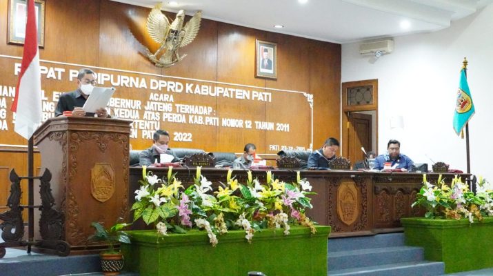 Rapat yang dipimpin langsung oleh Ketua DPRD Kabupaten Pati Ali Badrudin tersebut menyampaikan jika berdasarkan tindaklanjut dari hasil evaluasi Gubernur Jawa Tengah tersebut, ada dua raperda. Namun raperda tentang perubahan kedua atas Perda Kabupaten Pati No 12 tahun 2011, tentang Retribusi Perijinan Tertentu, belum turun evaluasinya sehingga belum ada pembahasan, sehingga kemudian dilakukan pembahasan terhadap raperda hasil evaluasi dari Gubernur Jawa Tengah terhadap APBD Kabupaten Pati Tahun Anggaran 2022.