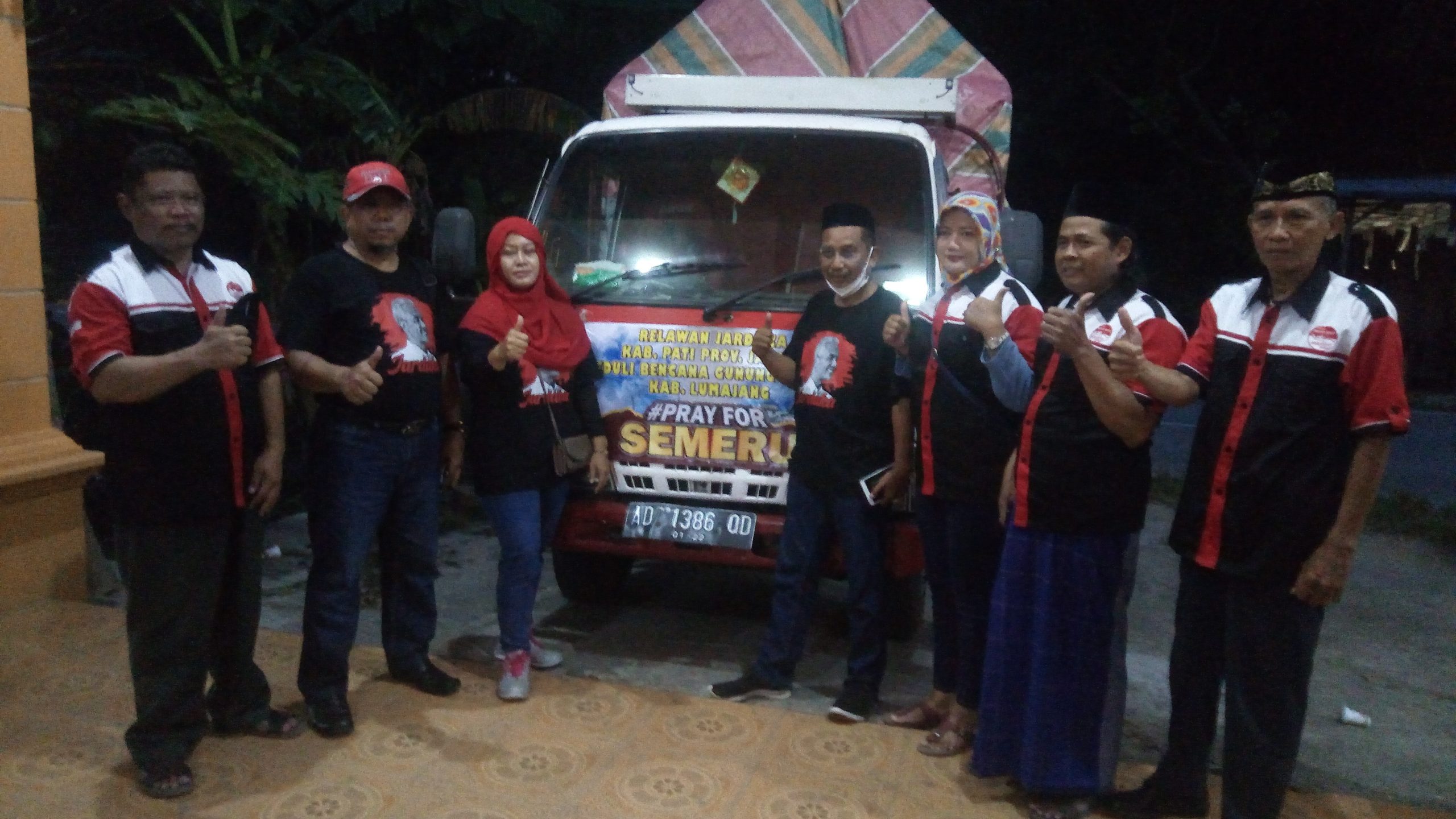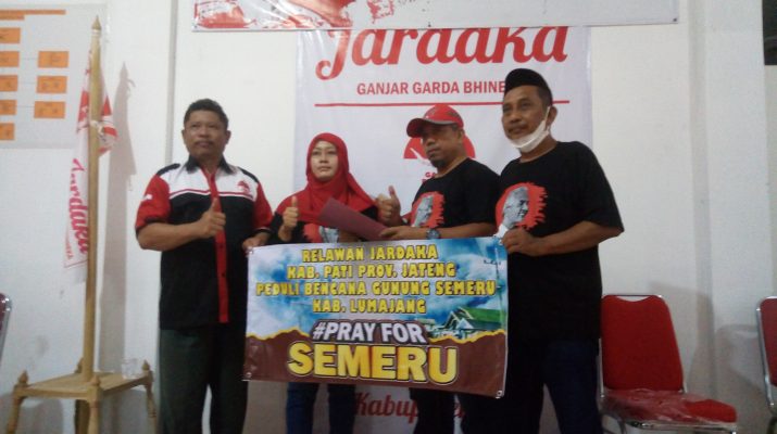 Sejumlah Relawan Jardaka yang ada di wilayah Kabupaten Pati melakukan menggalangan dana bantuan secara sukarela dengan mendapat dukungan penuh pengurus DPP Jardaka (Ganjar Garda Bhineka). Dari Posko Jardaka Pati yang bermarkas di desa Jatiroto Kayen Pati paket bantuan bergerak menyalurkan ke posko pengungsi di Kabupaten Lumajang Jatim. (Senin,13/12/2021). Hadir dalam pelepasan bantuan tersebut pengurus DPP Jardaka, pengurus Jardaka Kabupaten Pati serta sejumlah relawan.