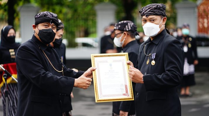 Bupati pun menyampaikan ucapan selamat dan apresiasinya kepada para penerima penghargaan, diantaranya kepada Sekda Pati Jumani dan sejumlah pejabat Pemkab lain yang hadir menerima penyematan tanda penghargaan itu, secara simbolis, di halaman Setda Kabupaten Pati, Jumat (7/1/2022).