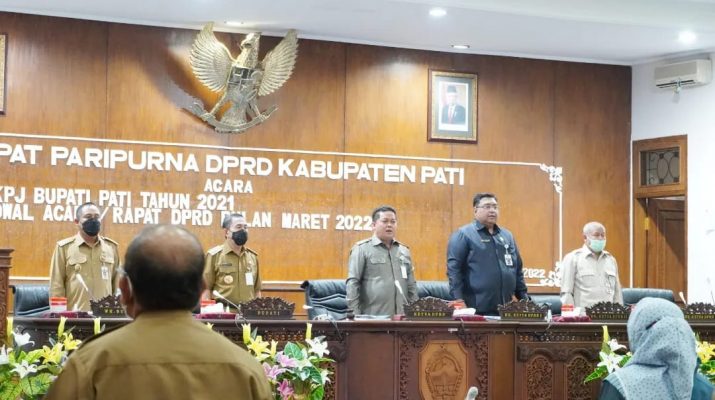 Pati, Berita10 – Rapat Paripurna DPRD Kabupaten Pati Bupati Pati sampaikan Laporan Pertanggungjawaban (LKPJ) Tahun 2021 serta perubahan jadwal acara atau rapat DPRD di bulan Maret, Senin (21/3).