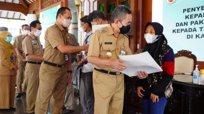 menghadiri penyerahan paket produk UMKM kepada Tenaga Kesehatan (Nakes) yang menangani Covid-19 dan vaksinasi. Momentum ini juga sekaligus digunakan untuk penerimaan secara simbolis rekening virtual account Bantuan Sosial (Bansos) bagi penyandang disabilitas di kabupaten Pati