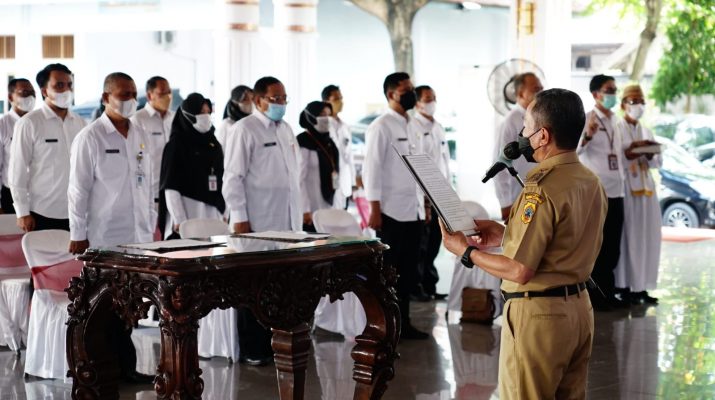 Pati, Berita10 – Sejumlah pejabat tinggi pratama, pejabat administrator dan pejabat pengawas di lingkungan Pemerintah Kabupaten Pati dilantik hari ini, di Pendopo Kabupaten Pati (24/5/2022).