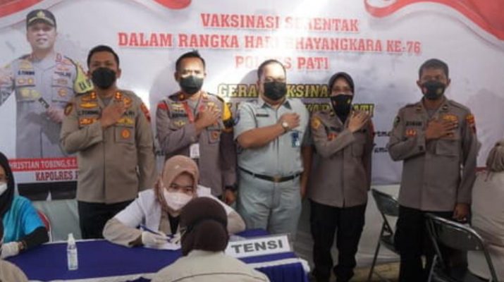 Kapolres Pati, dalam keterangannya melalui Kasi Dokkes, Ipda Jasmani mengatakan, pihaknya menggelar pengobatan gratis dan vaksinasi serentak.
