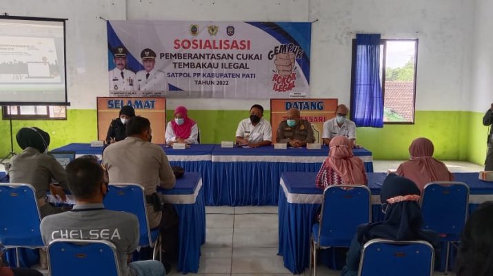 Pati, Berita10 – Bertempat di Aula Balai Desa Tamansari Kecamatan Tlogowungu, Rabu (15/6/2022 ) telah diadakan sosialisasi pemberantasan pita cukai dan tembakau ilegal. Dihadiri sekaligus sebagai Narasumber oleh Dwi Prasetyo Rini dari Bea Cukai Kudus , Djuharianto dari Satpol PP , Bayu Adi mewakili sekretariat DBHCHT Kabupaten Pati , Anik perwakilan dari BPKAD , perangkat Desa Tamansari , Babinsa , Babin Kamtibmas serta warga Desa Tamansari yang sehari harinya menjual rokok atau pelaku usaha pemilik warung rokok.