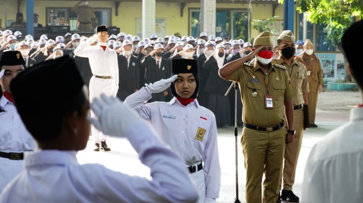 Pati, Berita10 – Bertempat di halaman SMPN 3 Pati, Senin (19/9), Pj Bupati Pati Henggar Budi Anggoro menghadiri upacara bendera. Turut hadir dalam kegiatan itu, kepala Disdikbud, Dishub, kepala dan para guru SMPN 3 Pati.