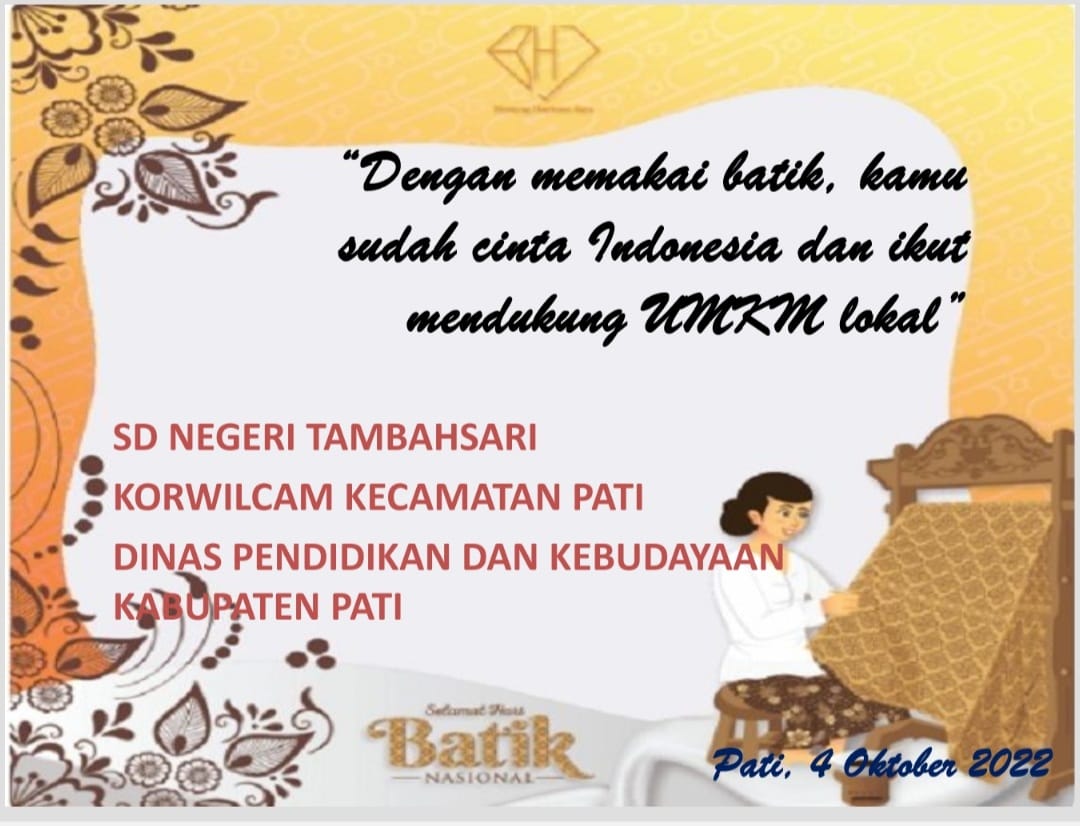 Kepala Sekolah SD Negeri Tambahsari Erva Yulia Kristanti, S,Pd menyampaikan bahwa para siswa memang diatur sedemikian rupa memakai baju batik untuk menanamkan sejak dini kecintaan terhadap produk dalam negeri.