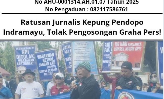 Indramayu, Jawa Barat (GMOCT) – berita10 – Pada tanggal 3 Juli 2025 terdapat Aksi ratusan jurnalis dari 21 organisasi pers di Indramayu mengguncang Pendopo Indramayu. Mereka menolak keras kebijakan pengosongan Gedung Graha Pers Indramayu (GPI) di Jalan MT. Haryono Sindang, yang dinilai sepihak oleh Bupati Lucky Hakim. Aksi ini merupakan puncak kemarahan atas surat pengosongan GPI yang dikeluarkan tanpa musyawarah sebelumnya. Para jurnalis menganggap kebijakan tersebut sebagai pelecehan terhadap kebebasan pers dan independensi media. Informasi ini juga didapatkan dari media online Aswajanews oleh GMOCT (Gabungan Media Online dan Cetak Ternama).