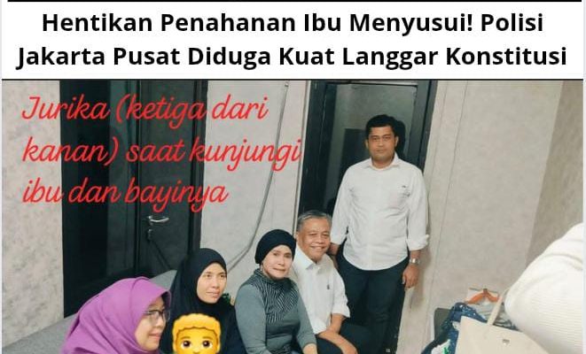 Jakarta, (GMOCT) – berita10 – Ketua Komite Tetap Advokasi dan Perlindungan Hukum Perempuan dan Anak pada unit Pemberdayaan Perempuan dan Anak – KADIN Indonesia, Jurika Fratiwi, SH., SE., MM., menyatakan keprihatinannya yang amat mendalam atas tindakan Polres Jakarta Pusat yang menahan seorang ibu menyusui bersama bayinya yang baru berusia 9 bulan. Hal tersebut disampaikannya kepada media ini usai mengunjungi Polres Jakarta Pusat, Selasa, 04 Agustus 2025.