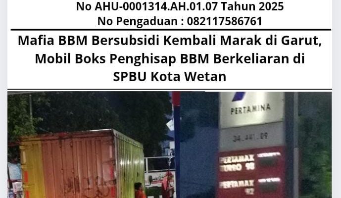 Garut, Jawa Barat (GMOCT) – berita10 – Praktik mafia Bahan Bakar Minyak (BBM) bersubsidi kembali marak di Kabupaten Garut, Jawa Barat. Kali ini, sebuah