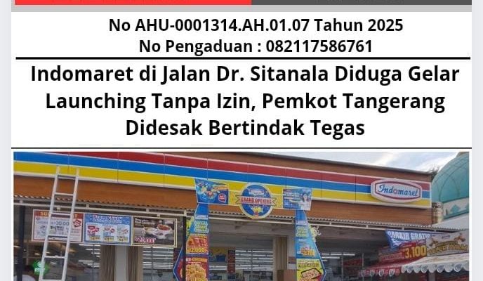 Tangerang, (GMOCT) – berita10 – Kegiatan launching gerai Indomaret di Jalan Dr. Sitanala, Kota Tangerang, menjadi sorotan tajam setelah diduga belum mengantongi izin usaha