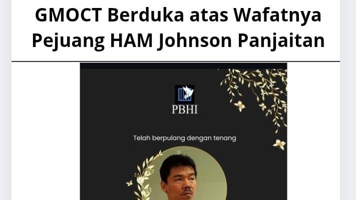GMOCT Berduka atas Wafatnya Pejuang HAM Johnson Panjaitan