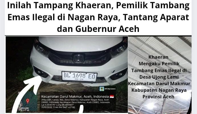 Nagan Raya, (GMOCT) – berita10 – Khaeran, seorang pemilik tambang emas ilegal di Desa Ujong Lami, Kecamatan Darul Makmur, Kabupaten Nagan Raya, menjadi sorotan