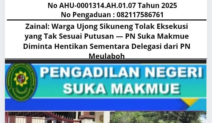 Zainal: Warga Ujong Sikuneng Tolak Eksekusi yang Tak Sesuai Putusan — PN Suka Makmue Diminta Hentikan Sementara Delegasi dari PN Meulaboh