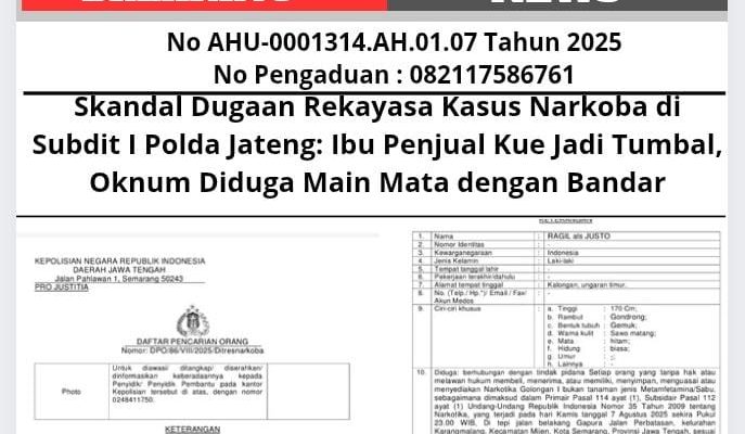 Skandal Dugaan Rekayasa Kasus Narkoba di Subdit I Polda Jateng: Ibu Penjual Kue Jadi Tumbal, Oknum Diduga Main Mata dengan Bandar