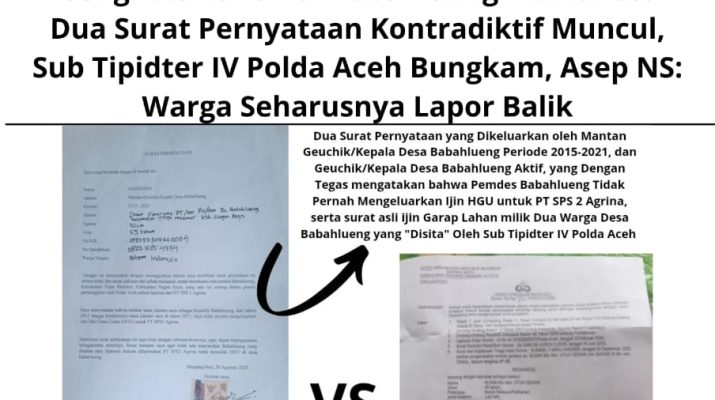 Sengketa Lahan di Babahlueng Memanas: Dua Surat Pernyataan Kontradiktif Muncul, Sub Tipidter IV Polda Aceh Bungkam, Asep NS : Warga Seharusnya Lapor Balik